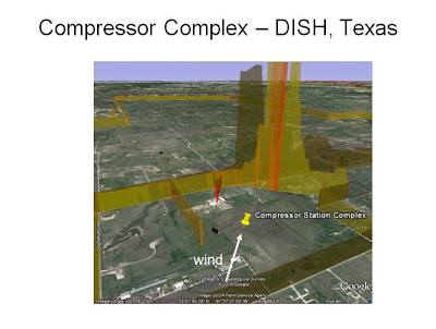 The following slide is from a presentation by Alisa Rich, Wolf Eagle Environmental. This plume is from Flower Mound in the area where a cancer cluster is currently under investigation. The plume exceeded 40ppm which is the cut off point of the equipment.