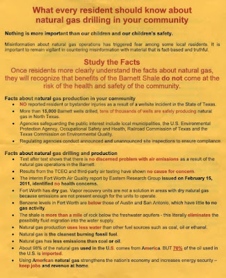 So, what do you think? Since the City of Fort Worth is listed on the flyer, maybe they created the flyer from the content on Chesapeake Energy’s website. Cozy, eh? Or, did someone else create the flyer and sick the city’s name on it to lend credibility? Still cozy.