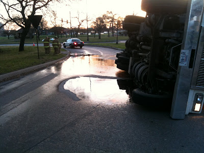 Note the fluid went straight to the storm drain; the Trinity River is about 200 yards away and that’s where storm sewers go. No idea how much went there before firefighters did some blocking.